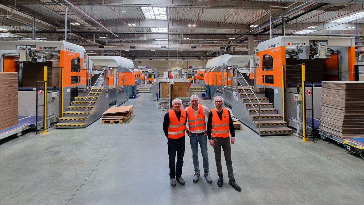 Left to right: François Duboin (DS Smith), with Alexandre De Kalbermatten and Szymon Ochociński (BOBST).