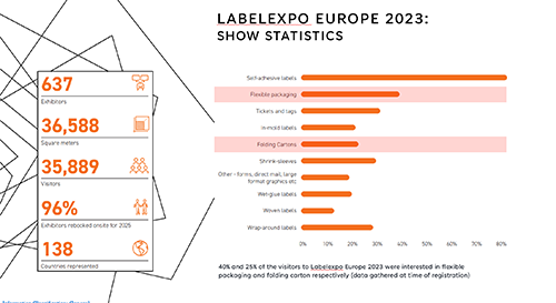 This is reflected in a growing visitor interest in both flexible packaging and folding cartons. At Labelexpo Europe 2023 over 25% of visitors registered an interest in folding carton technology and 40% in flexible packaging. This demonstrates that Labelexpo has transformed into a package printing show, albeit with labels at its core.