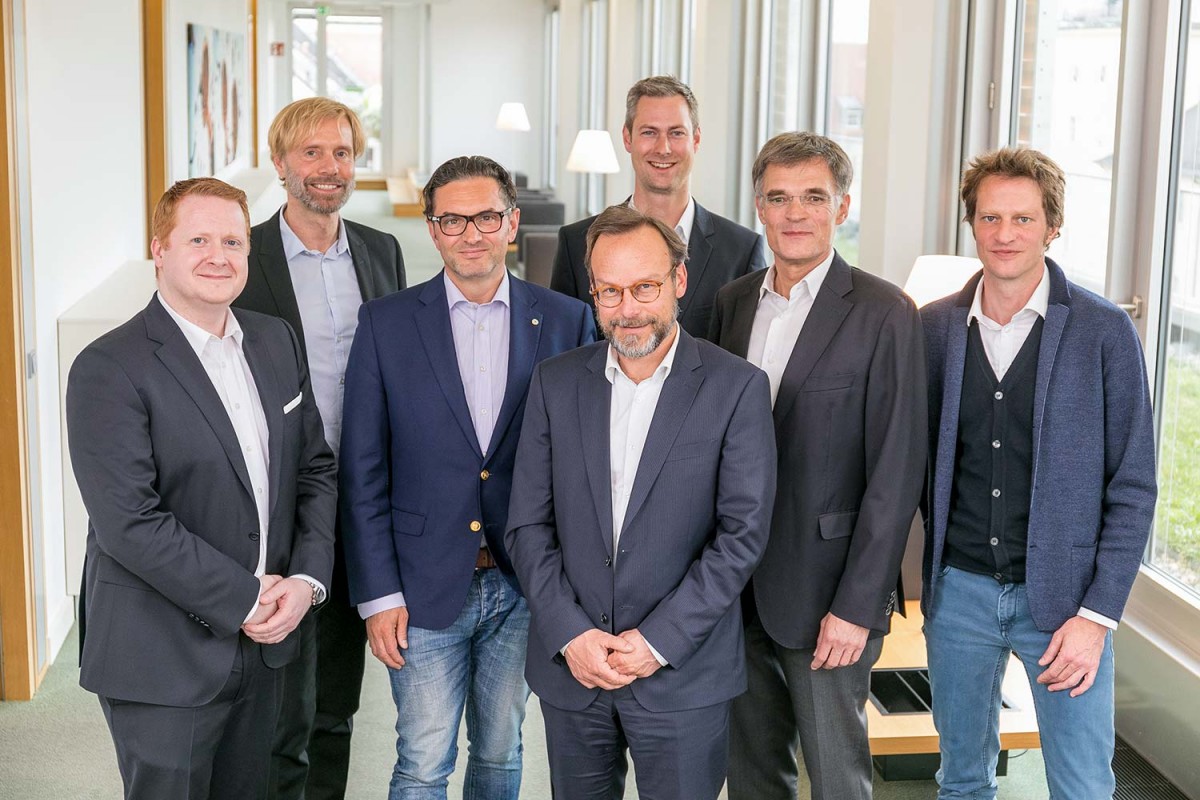 Left to right: Stefan Kappaun, EVP Inks & Fluids, Durst Group; Christopher Kessler, General Counsel, Koenig & Bauer AG; Christoph Gamper, CEO & Co-Owner, Durst Group; Christian Gatterer, CFO, Durst Group; Jochen Sproll, Project Manager Corporate Development, Koenig & Bauer AG; Claus Bolza-Schünemann, CEO, Koenig & Bauer AG; Harald Oberrauch, Owner Durst Group.