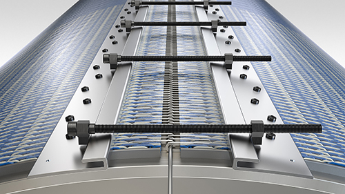 Thanks to the Simple Clamping System (SCS), installing the drum lagging is quick, clean and environmentally friendly – without any drilling or solvents. Removal is also easy with own technicians and without special tools.