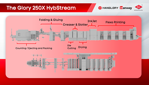 “By combining HanGlory’s expertise in industrial digital inkjet technology with Keshenglong’s prowess in corrugated printing machinery, the Glory250X HybStream stands as a testament to the power of ‘digital+traditional’ synergy,” said a representative from the partnership. “This innovative machine redefines packaging production, integrating large-scale high-precision inkjet printing with inline converting, transforming the entire process from raw materials to finished products. We are confident that the Glory250X HybStream will empower our customers with enhanced production value and unlock boundless business growth opportunities.”
