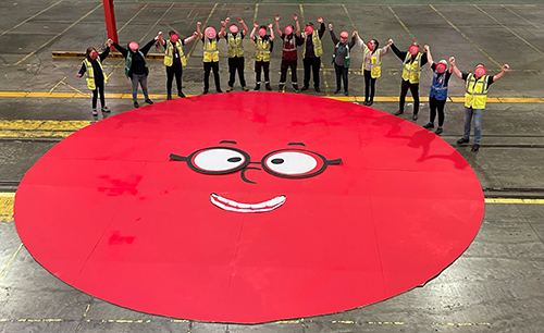 With an ambition to create the largest Red Nose possible from just corrugated cardboard, glue and paint, colleagues from CorrBoard put their creative skills to the test during Red Nose Day 2024. Within just three hours, the team unveiled a 9m high version of Smirklethorpe!