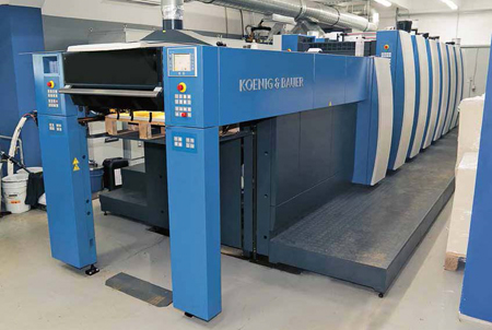 The six-colour Rapida 75 PRO in the pressroom at Delta Print T in Moscow.