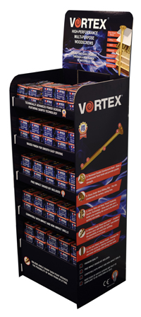 Durham Box has recently supplied fixings and fasteners wholesaler, Owlett-Jaton, with 250 FSDUs for multiple merchant stores across the UK. The units, which display boxes of woodscrews from the company’s Vortex range, were die-cut, part assembled, wrapped in outers and provided with store completion instructions and a mop tray.