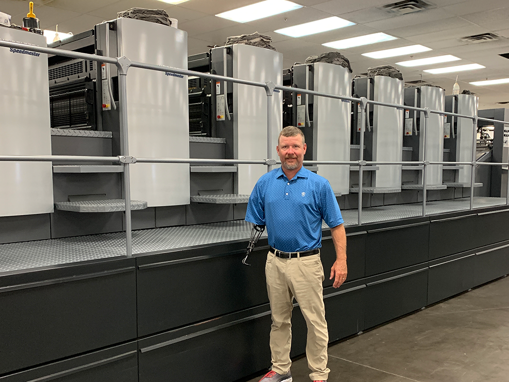 Wyatt Hogue, President of Adams Litho, with the Speedmaster CD 102