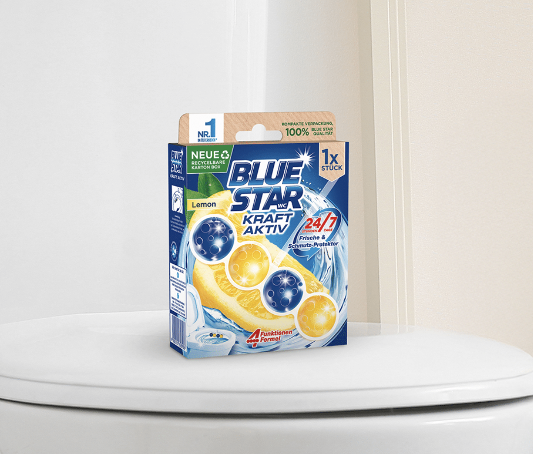 The award-winning solution for Blue Star Kraft Aktiv, a household product from Henkel sensitive to aroma loss, combines two improvements in one: by switching from blister packaging to a 100 % cartonboard solution, the packaging is now easier to dispose and can be recycled. Thanks to its integrated aroma barrier, the recycled cartonboard TOPCOLOR® BARRIER AROMA keeps the fragrance in place and only releases it when it should be: during actual use. And all without the use of plastic. Unlike conventional cartonboard, which has tiny pores that let aromas escape and unwanted substances enter, TOPCOLOR® BARRIER AROMA effectively preserves the product’s original scent and blocks external odours. This ensures the product maintains its quality and fragrance throughout its shelf life, without requiring additional inner liners or protective components.
