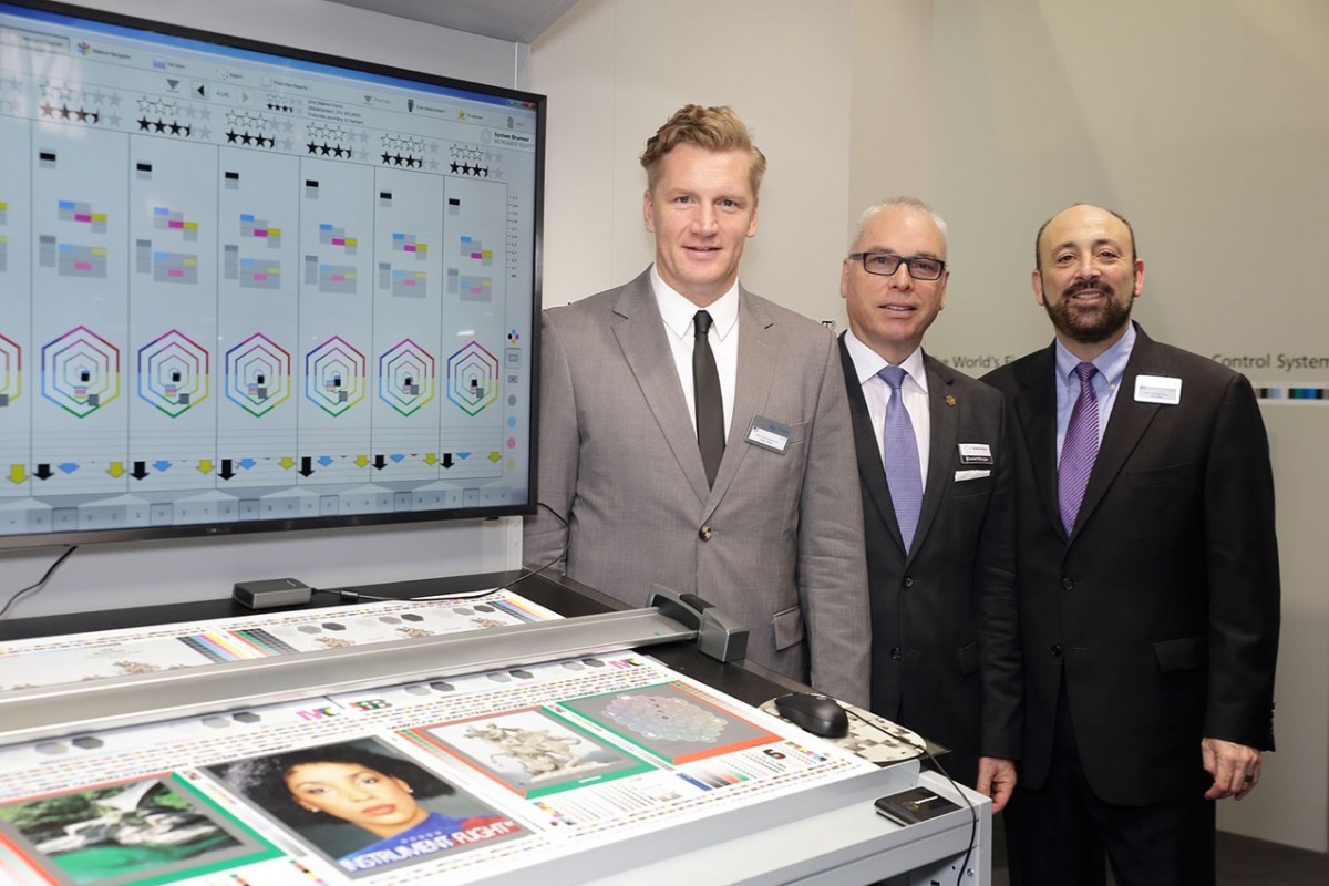 Left to right: Chris Travis, KBA North America Director of Technology; Daniel Würgler, President and CEO of System Brunner AG; and Eric Frank, KBA North America Senior Vice president of Marketing and Product Management.