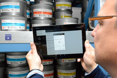 The following situation arises at some point in every print company – a necessary consumable such as an anti-foaming agent or washing solvent has run out. The stores are empty because someone on a previous shift took the last bottle or container but neglected to mention this to anyone! Koenig & Bauer has taken up the challenge of avoiding such annoying circumstances and has developed the ProductionApp as a powerful inventory management and batch tracking tool for use on mobile Android devices. The first practical users are already full of praise for the App.