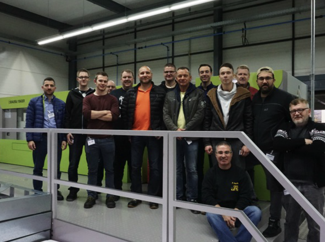 The Heilbronn, Germany based die-maker, Marbach, will soon officially open its new training center. Prior to this, participants of the advanced course ‘Corrugated board processing – flat die-cutting’ from the Paper Centre Gernsbach had the opportunity to spend time at Marbach’s recently installed die-cutter as part of a 3-day seminar. Seminar leader Holger Burkert said, “When we learned that Marbach was getting its own die-cutter we immediately contacted them. It is, after all, of benefit to participants to have the hands-on experience as well as theoretical knowledge.