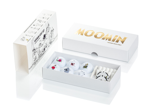 The box material is an all-white N-flute corrugated board, produced from MetsäBoard Natural WKL Bright. It is lightweight but strong and recyclable. The package is composed of the same white kraftliner for all layers with gold foil on the lid, which gives an exclusive feel when touching the package. The Moomin characters are printed on the packaging sleeve which is made from MetsäBoard Natural FBB folding boxboard. The packaging was manufactured by Finnish Cadpack that also participated in the design process.