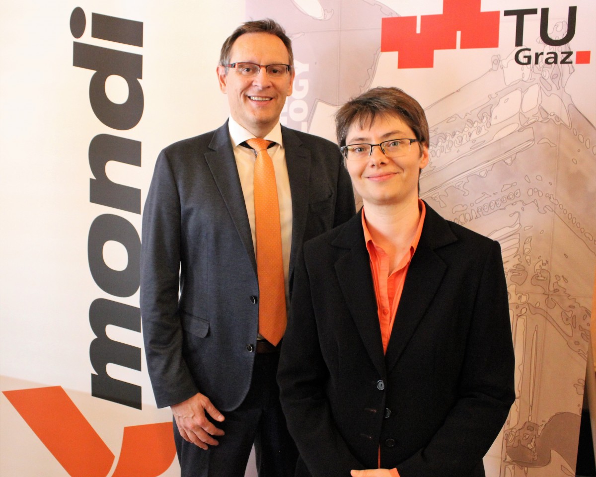 Left to right: Leo Arpa, Head of R&D Paper at Mondi and Karin Zojer, Laboratory head, Christian Doppler-Lab.