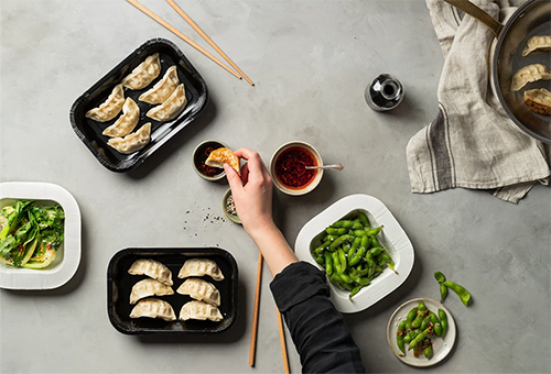 The trays have all the advantages of trays made entirely from plastic. Created from fresh wood fibres of known and traceable origin from sustainably managed forests, the trays are a far more sustainable alternative with a significantly lower carbon footprint. And as well as having a fat and moisture barrier, the PET coating ensures extreme temperature resistance. This makes it ideal for trays that are placed into microwave or conventional ovens with ready-made chilled and frozen food.