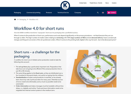 New look, new content and responsive design — Dresden, Germany-based KAMA has launched a completely new website and picks up on important trends in post-press such as short runs and efficiency in the job printing and packaging markets, finishing and added value as well as the networking of workflows right up to the end of the value added chain.