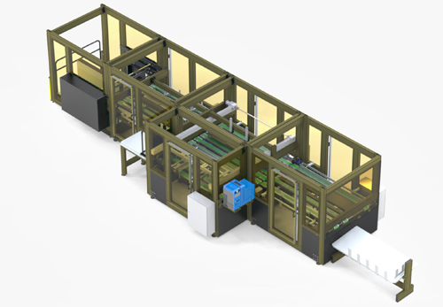 The Popupline is an assembling line for standee POS displays. The machine handles the components and assembles and glues them, with the completed display being exited from the machine in a speedy process.