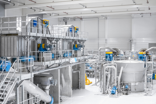 The BlueLine OCC stock preparation unit allows a maximum yield of high-quality stock from recovered paper. It is designed for a daily capacity of 2,700 metric tons. Thanks to an especially low energy consumption and the comprehensive AquaLine Flex water management system, the stock preparation line at Palm is setting industry standards for the efficient use of resources.