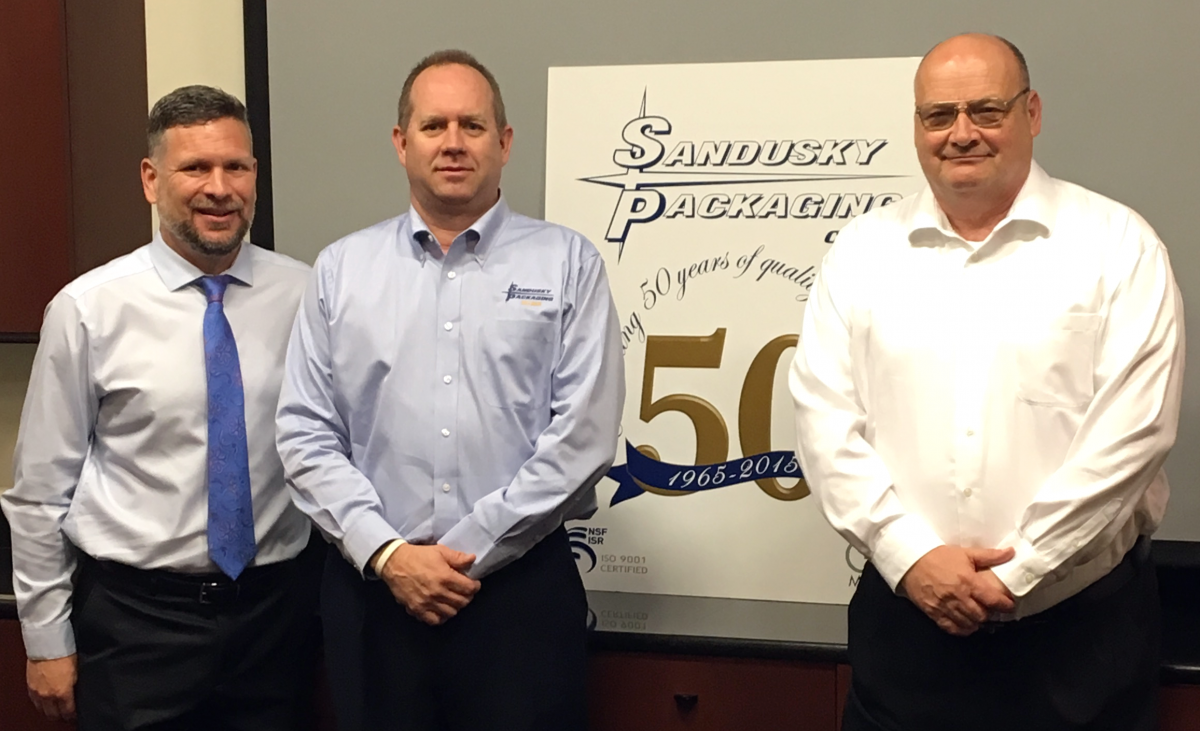 From left: Greg Schiefelbein, KBA Regional Sales Manager; Randall Johnson, Sandusky Vice President; and James Longer, Sandusky President