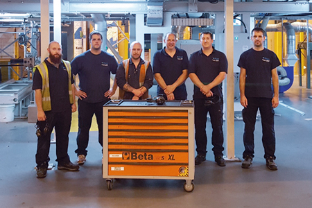 The BP Agnati Quantum line has a maximum speed of 310m per min and the machine ran at an average speed for the whole shift of 275m per min. The crew consisted of four operators and a clamp truck driver – working together to produce 35 customer orders. In total, there were 26 dry-end changes and 16 wet-end changes and 72 splices were carried out, including one flute change. Total downtime for the shift was just 10 minutes – five minutes for a paper break and five minutes for the flute change.