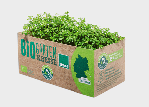 After a successful pilot phase, the two retail divisions, Lidl and Kaufland, are gradually introducing the innovative paper packaging based on Silphium from now on in the fruit and vegetable field, starting with organic cress. At Lidl, organic cress has been made available in Silphie-based packaging since November, initially in southern Germany, whereas at Kaufland, it is due to be available nationwide in all stores throughout Germany. This marks the start of a series of many other product changes: Organic tomatoes, apples, and mushrooms, for example, will follow soon at Kaufland, and is expected to expand to other national companies. In the coming months, smoked and Stremel-salmon from the K-Bio own brand will also be offered in the new packaging at Kaufland, Germany.