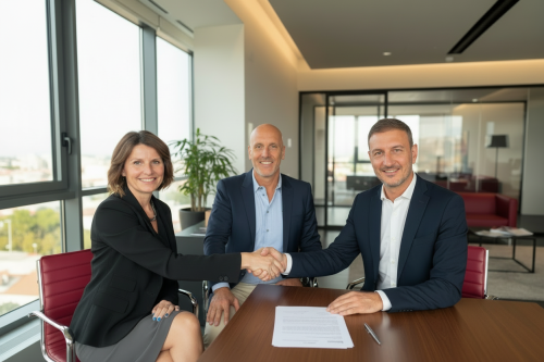 Left to right: Silvia Magnoni (CEO of Schiassi), Walter Pacioni (CEO of Sipack), and Simone Cini (Sales Manager of Sipack).