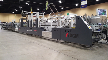 The new PPCTS/DGM Smartfold 1100SL Ultra X folder gluer for folding cartons was successfully launched and sold at the recent IADD/FSEA Odyssey show in Schaumburg, IL. The extra length and faster Smartfold Ultra X is equipped with motorized carriers, job memory recall, servo drive technologies and many more features for fast changeovers to maximize uptime and productivity.