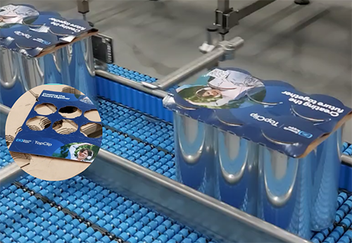 With a 30% lower carbon footprint than a shrink wrap consumer pack, TopClip is 100% renewable, recyclable and biodegradable. It also displays the products much more effectively than the complete wrap-around solutions that are commonly used for canned drinks.