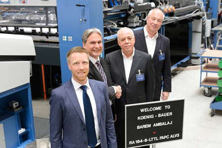 Recep Tasyanar, owner of Barem Ambalaj, one of the largest packaging printers in Turkey with headquarters in Tire/Izmir, recently visited Koenig & Bauer to check how work was progressing on his new Rapida 164. The six-colour double-coater press with triple-length extended delivery is scheduled to arrive in Gaziantep in May. It is to be installed in the new production plant there and will join a five-colour Rapida 142 with inline coater and 630 mm raised foundations which is already up and running. Following commissioning of the new press, the official inauguration of the new production plant is planned for November.