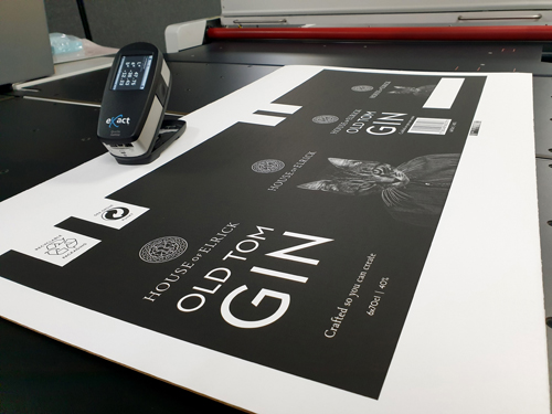 If a single image can show what a business is all about, the cat on the gin box is the one that does just that for Victory Graphics. The attention-grabbing combination of dark black tones, a fine image and bright reverse-outs are exceptional enough, but when you consider it was produced on a 20-year-old press using a single KODAK FLEXCEL NX plate, thus eliminating register issues and reducing cost, it becomes extraordinary.