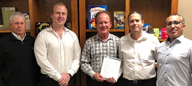 (L to R): Brian Shepherd, Highcon Sales Manager; Jordan Patterson, Virtual Packaging Director of Administration; Monty Patterson, Virtual Packaging CEO; Aviv Ratzman, Highcon Co-founder and CEO; and Yariv Ben-Yosef, Highcon VP Customer Success