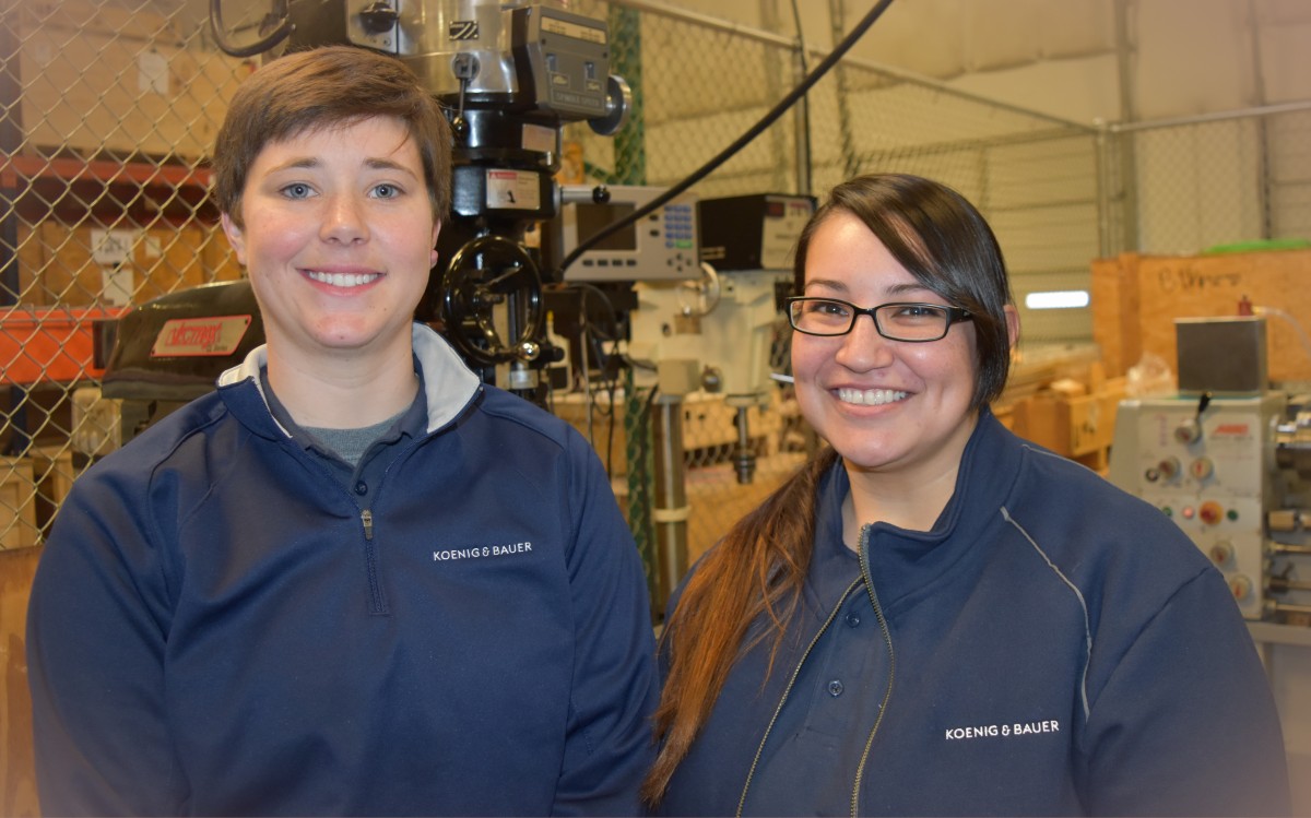 Kaitlin Sullivan (left) joined Koenig & Bauer (US) as an Electrician Apprentice and Amanda Beltran has entered the company’s apprenticeship program in its machine shop as a new Machinist Apprentice.
